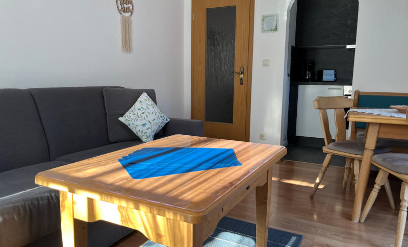 Die Wohnung „Jenner“ ist eine geräumige, rustikal und gemütlich eingerichtete Ferienwohnung mit separatem Schlafzimmer, eigener Küche, Essecke, grosser ausziehbarer Schlaf-Couch für zwei Personen, Kabel-TV und Terrasse. WLAN auf Wunsch kostenlos. Ideal für 3 bis 4 Personen.