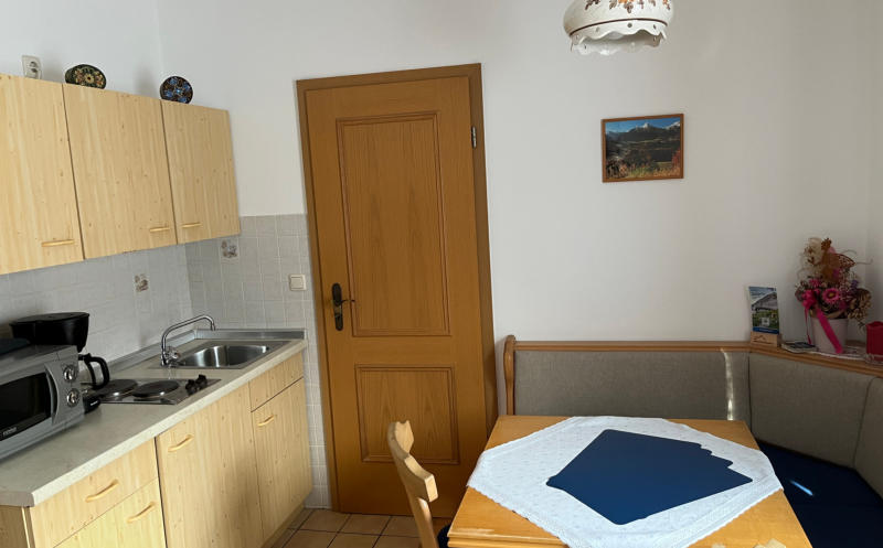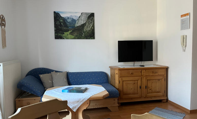 Die Wohnung „Kehlstein“ ist eine kleine- und gemütlich eingerichtete Ferienwohnung mit separatem Schlafzimmer, Küchenzeile, Essecke, Schlaf-Couch, Kabel-TV und Balkon. WLAN auf Wunsch kostenlos. Ideal für 2 bis max. 3 Personen.